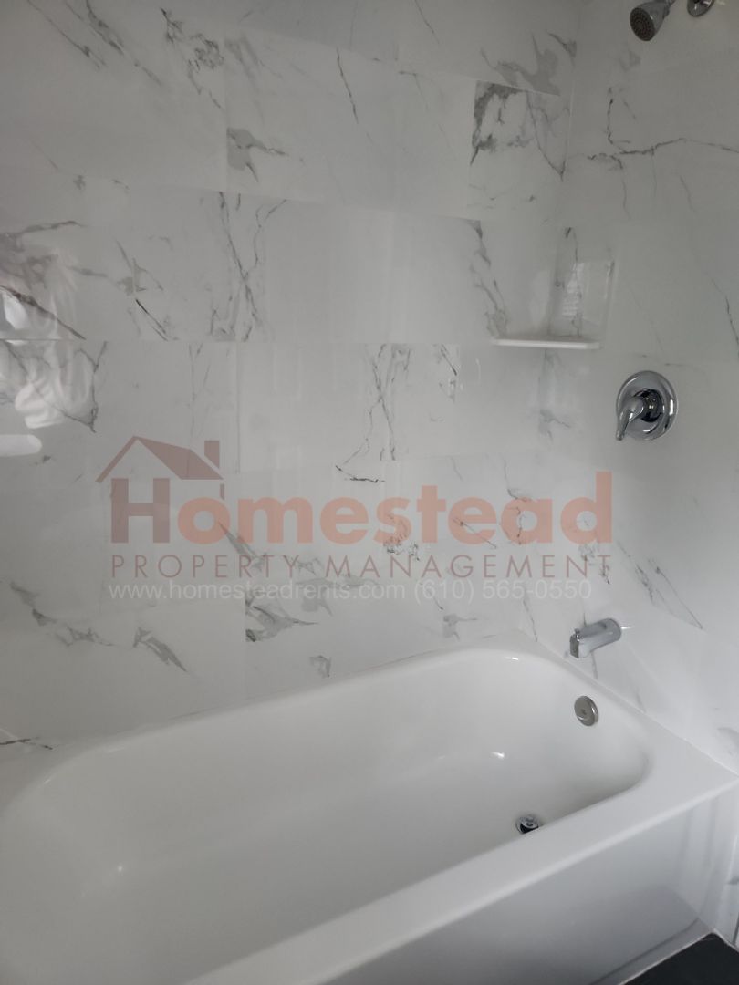 This 2 Bedroom, 1 Bathroom detached Carriage House in the rear of the property provides all the comforts of living in a single-family home. Renovated in 2023 from top to bottom this unit features a modern kitchen with a full appliance package, and washer and dryer in unit. The bathroom has ceramic tile and bathtub.